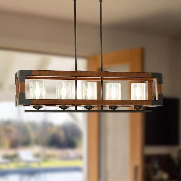 5-Light Black Rustic Rectangular Box Chandelier for Kitchen Island with No Bulbs Included