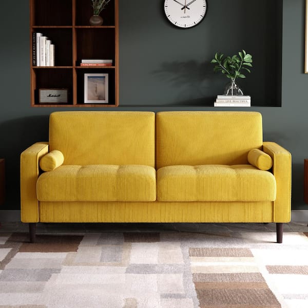 62 in. Yellow Straight Arm Corduroy Fabric Upholstered Rectangle 2-Seater Loveseat