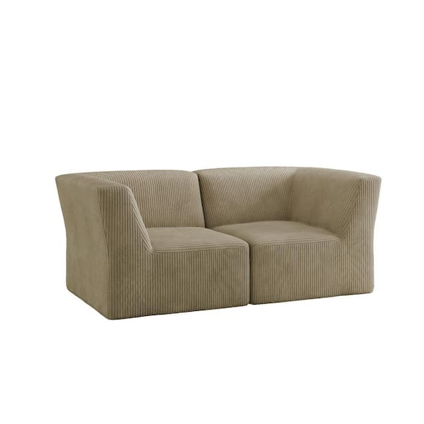 71.52 in. Modern Square Arm Corduroy Upholstered Rectangle 2-Seater Sofa in Khaki