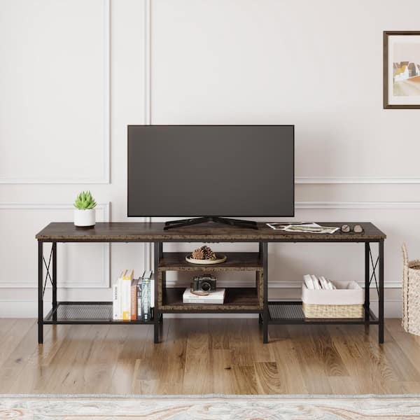 71 in. Rustic Brown Rectangle TV Stand Entertainment Center Fits TV's up to 75 in. with Wood Storage Open shelving