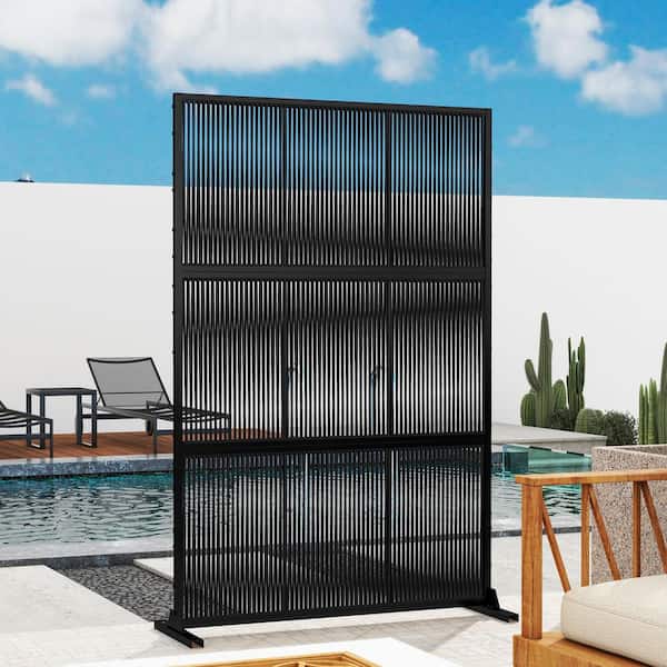 72.1 in. Metal Garden Fence Outdoor Privacy Screen Garden Screen Panels in Black (1-Pack)