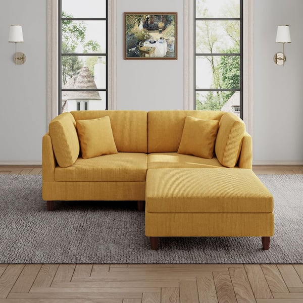 74.7 in. Straight Arm 3-Piece Corduroy Upholstered L-Shaped Sectional Sofa in Orange