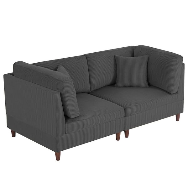 80 in. Modern Straight Arm Corduroy Upholstered Rectangle 2-Seater Sofa in Gray