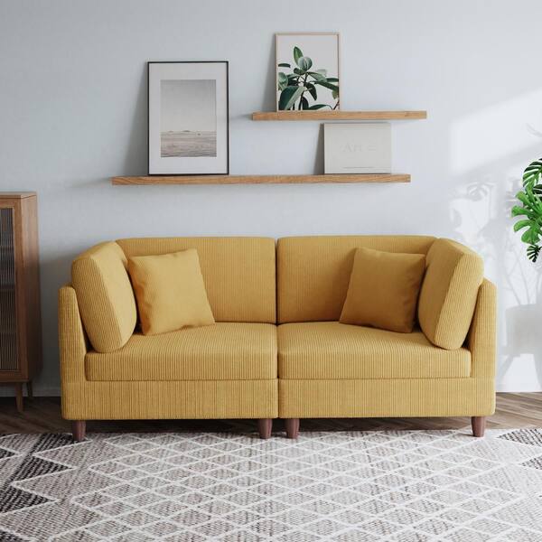 80 in. Modern Straight Arm Corduroy Upholstered Rectangle 2-Seater Sofa in Orange