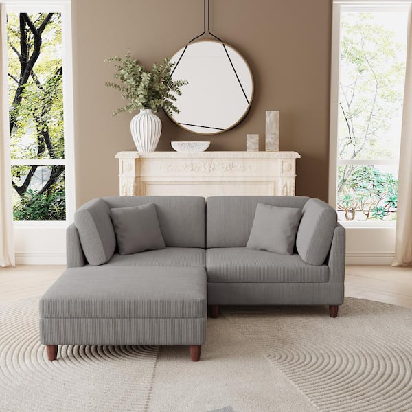 80 in. Straight Arm 3-Piece Corduroy Upholstered L-Shaped Sectional Sofa in Light Gray
