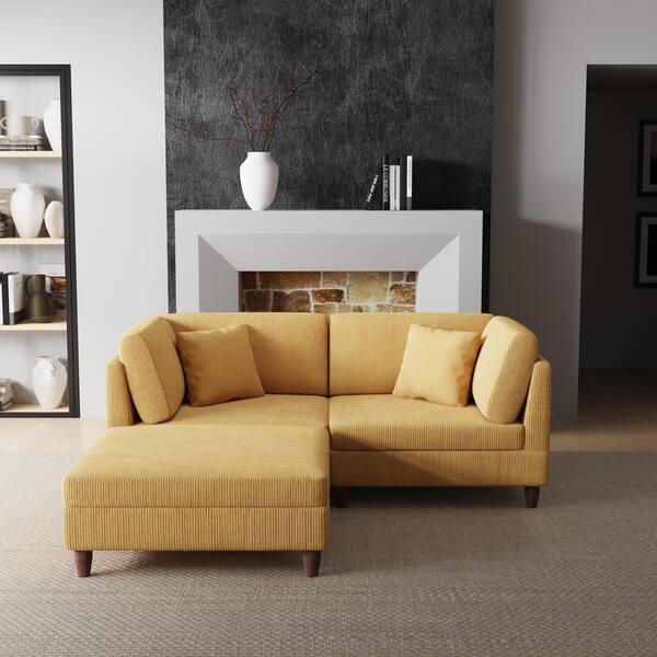 80 in. Straight Arm 3-Piece Corduroy Upholstered L-Shaped Sectional Sofa in Orange