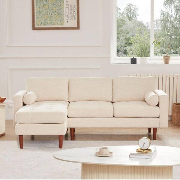 80 in. W Modern Rounded Arm 1-Piece Linen L-Shaped Reversible Sleeper Sectional Sofa in Beige with 2-Pillows