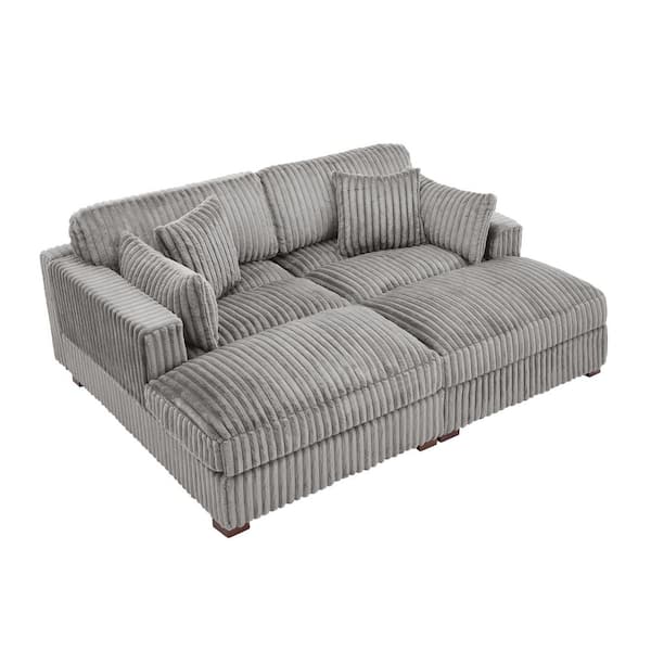 82.7 in. Modern Square Arm Faux Rabbit Fur Fabric Upholstered Sectional Sofa in Light Gray With 2-Pillows