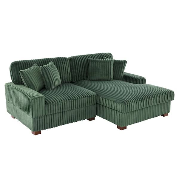 82 in. W Square Arm 2-Piece Faux Rabbit Fur Polyester L-Shaped Modern Sectional Sofa in Green with 4-Pillows