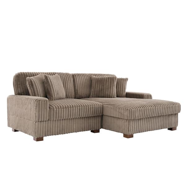 82 in. W Square Arm 2-Piece Faux Rabbit Fur Polyester L-Shaped Modern Sectional Sofa in Light Brown with 4-Pillows