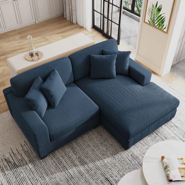 83.4 in. W Square Arm 2-Piece Corduroy Fabric L-Shaped Modern Sectional Sofa in Navy Blue with 4-Pillows