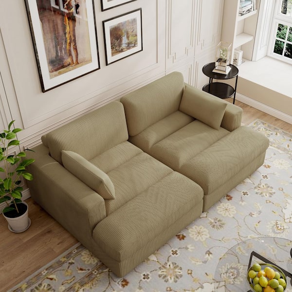 83.8 in. Modern Square Arm Corduroy Fabric Upholstered Sectional Sofa in Camel With 2 Pillows and Wood Leg