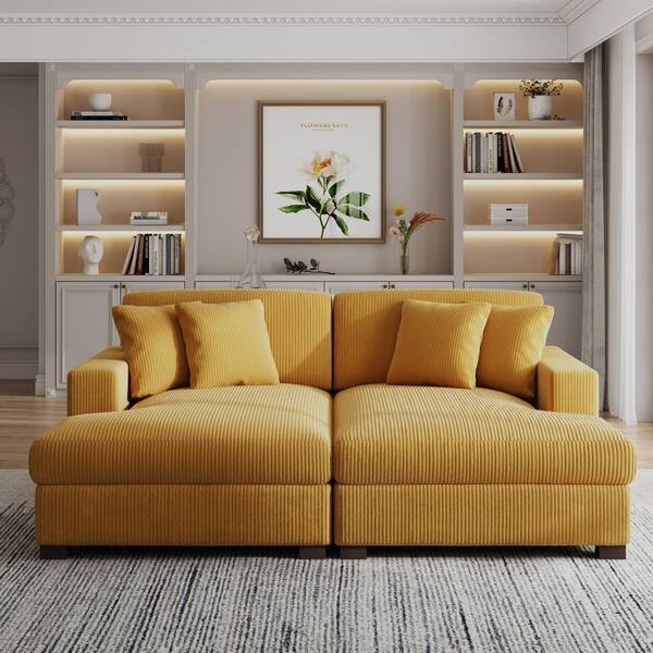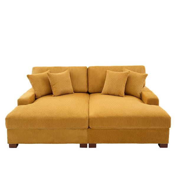 83 in. Square Arm Orange Corduroy Fabric Upholstered Sectional Sofa With Four Pillows And Wood Leg