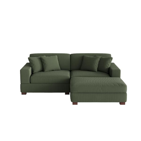 83 in. W Modern Square Arm 3-Piece Corduroy Fabric L-Shaped Sectional Sofa in Green