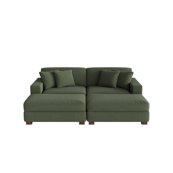 83 in. W Modern Square Arm 4-Piece Corduroy Fabric Sectional Sofa in Green with 4 Pillows
