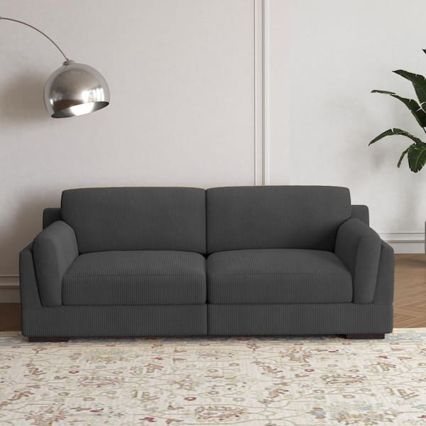 90.6 in. Modern Square Arm Corduroy Fabric Rectangle Upholstered 2-Seater Sofa in. Gray with Wood Frame