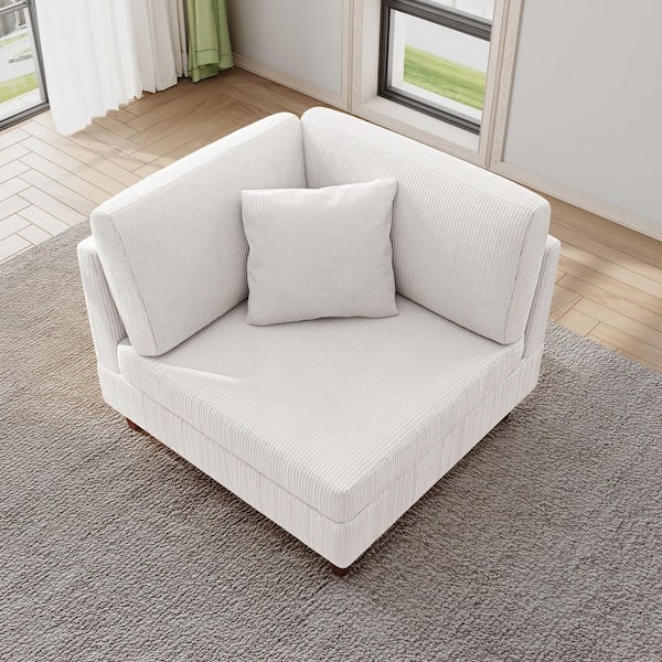 Beige Corduroy Fabric Left Arm Facing Sectional Corner Arm Chair with Wood Legs(Set of 1)