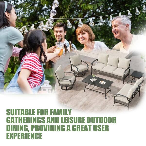 Black 6-Piece Wicker Patio Conversation Sofa and Loveseat and Single Chairs Set and Coffee Table With Beige Cushions