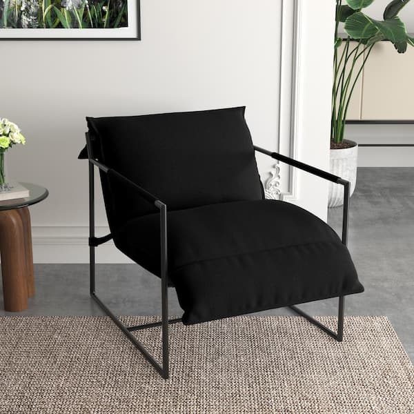 Black Removable Cushions Sling Accent Armchair with Matte Black Metal Frame (Set of 1)