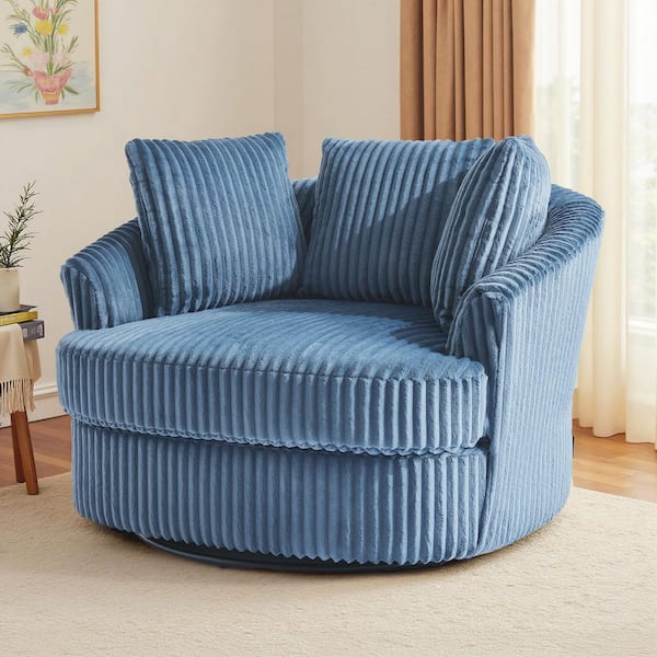 Blue Faux Rabbit Fur Polyester Fabric Upholstered 360° Swivel Accent Barrel Chair (Set of 1)