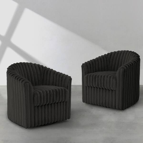 Chocolate Faux Rabbit Fur Polyester 360° Swivel Barrel Arm Chair With Metal Base (Set of 2)