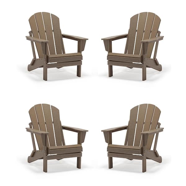 Classic Coffee Folding Plastic Adirondack Chair (4-Pack)