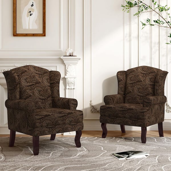 Cranberry Linen Wood Legs Upholstered Accent Arm Chair with Wingback (Set of 2)