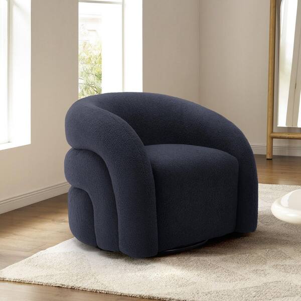 Dark Blue Boucle Polyester Fabric 360° Swivel Accent Barrel Armchair with Metal Base (Set of 1)