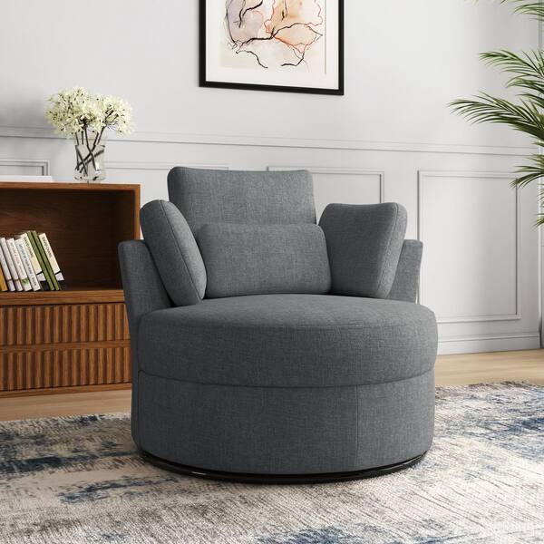 Gray Chenille Upholstered 360° Swivel Accent Barrel Chair(Set of 1)