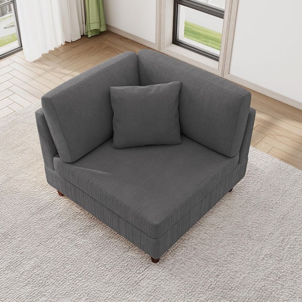 Gray Corduroy Fabric Left Arm Facing Sectional Corner Arm Chair with Wood Legs (Set of 1)