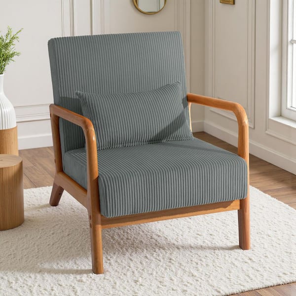 Gray Corduroy Fabric Upholstered Accent Arm Chair with Dark Rubber Wood Frame (Set of 1)
