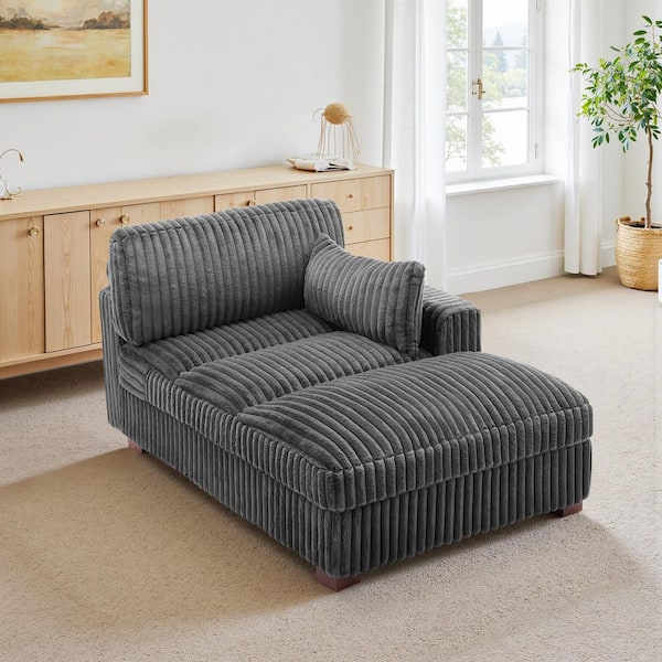 Gray Right Arm Facing Faux Rabbit Fur Polyester Upholstered Sectional Chaise Lounge with Wood Frame (Set of 1)