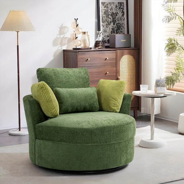 Green Cotton Upholstered 360° Swivel Accent Barrel Chair with Corduroy Pillows (Set of 1)