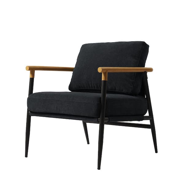 Mid-Century Modern Black Cotton Fabric Upholstery Arm Chair with Metal Legs(Set of 1)