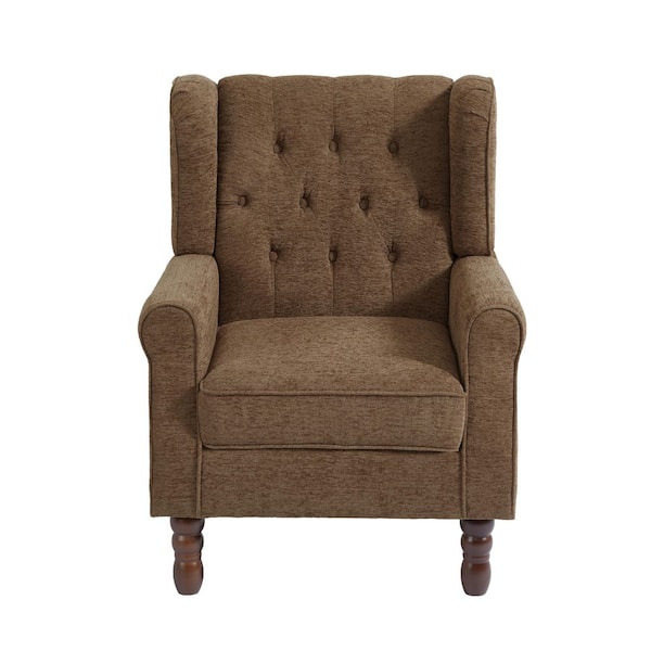 Modern Brown Linen Upholstered Button High Back Accent Arm Chair With Wood Legs (Set of 1)