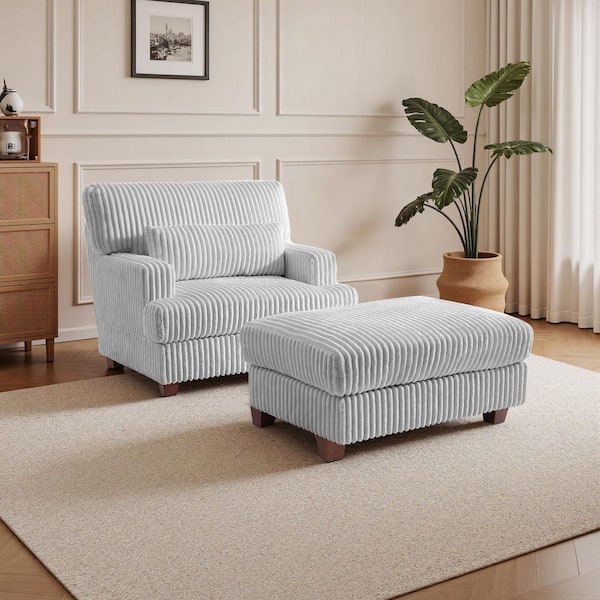 Modern Gray Faux Rabbit Fur Polyester Fabric Upholstered Accent Arm Chair with Ottoman (Set of 1)
