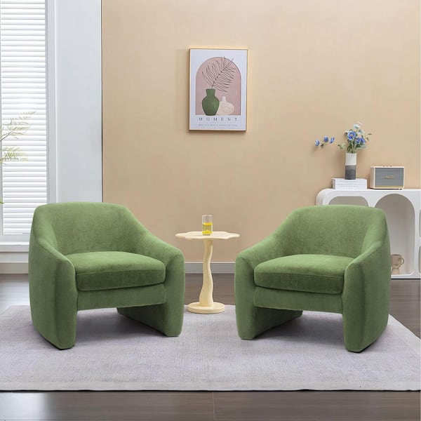 Modern Green Chenille Accent Arm Chair (Set of 2)