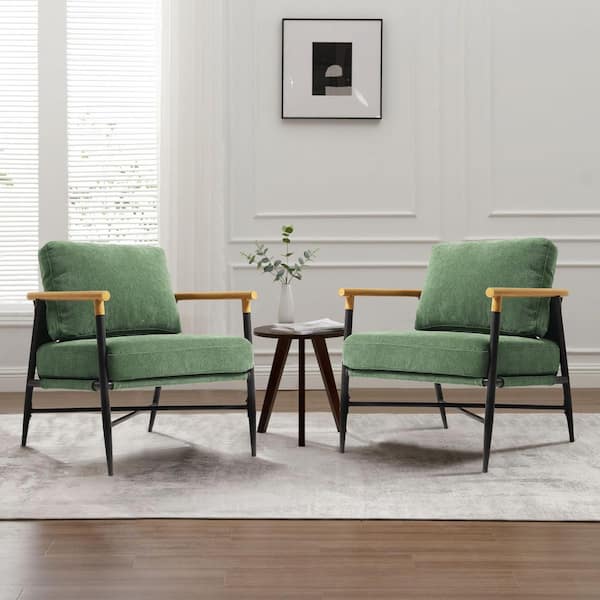Modern Green Cotton Fabric Upholstered Arm Chair with Metal Base(Set of 2)