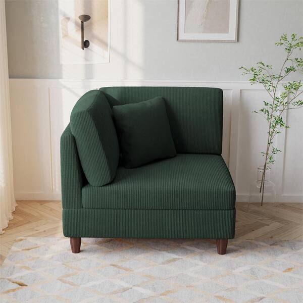Modern Hunter Green Corduroy Fabric Left Arm Facing Sectional Corner Armchair with Wood Legs Set of 1