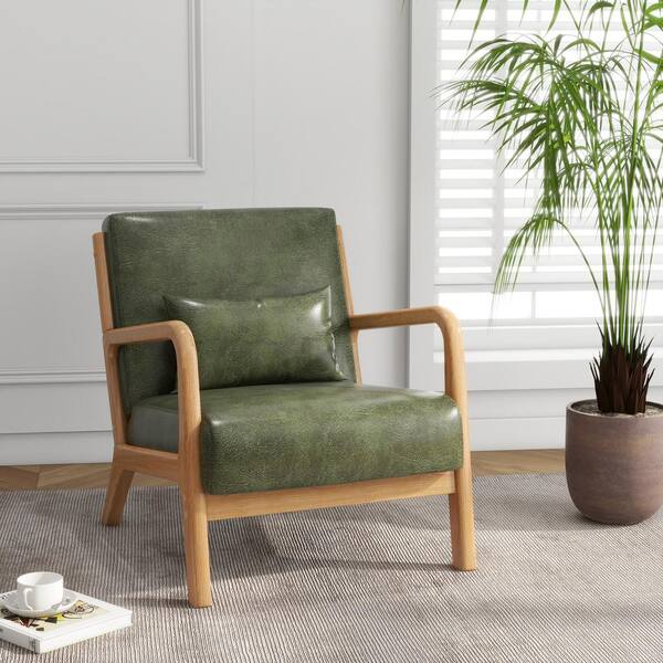 Modern Hunter Green Faux Leather Wood Frame Upholstered Accent Arm Chair (Set of 1)