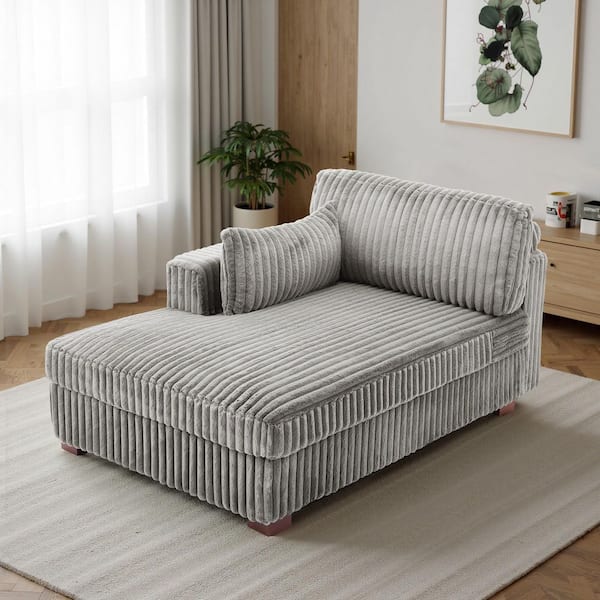 Modern Left Arm Facing Light Gray Faux Rabbit Fur Polyester Upholstered Sectional Chaise Lounge with Wood Frame