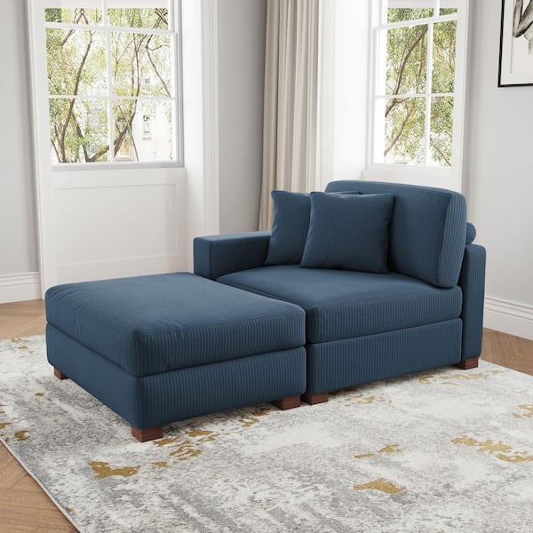 Modern Navy Blue Corduroy Polyester 2-Piece Left Arm Facing Sectional Chaise Lounge(Set of 1)