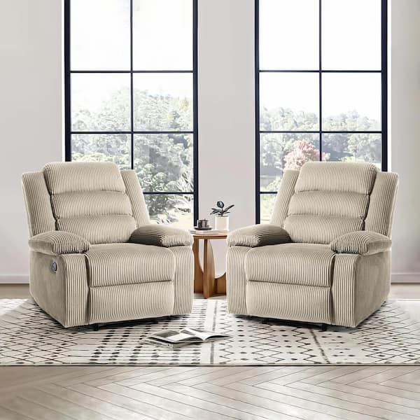Modern Oatmeal Corduroy Fabric Upholstered Recliner Chair with Adjustable Backrest and Footrests (Set of 2)