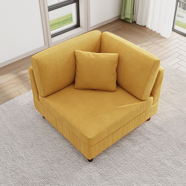 Modern Orange Corduroy Fabric Right Arm Facing Sectional Corner Arm Chair with Wood Legs(Set of 1)