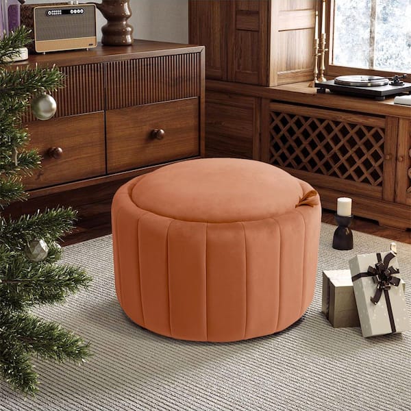 Modern Orange Velvet Round Accent Storage Ottoman (Set-1)