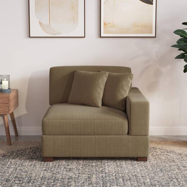 Modern Right Arm Facing Camel Corduroy Fabric Sectional Corner Arm Chair with 2-Pillows(Set of 1)