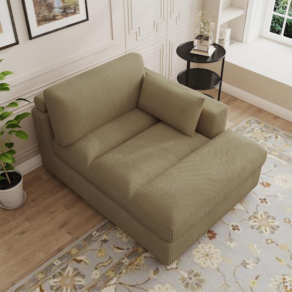 Modern Right Arm Facing Camel Corduroy Polyester Upholstered Tufted Chaise Lounge with Wood Frame and 1-Pillow