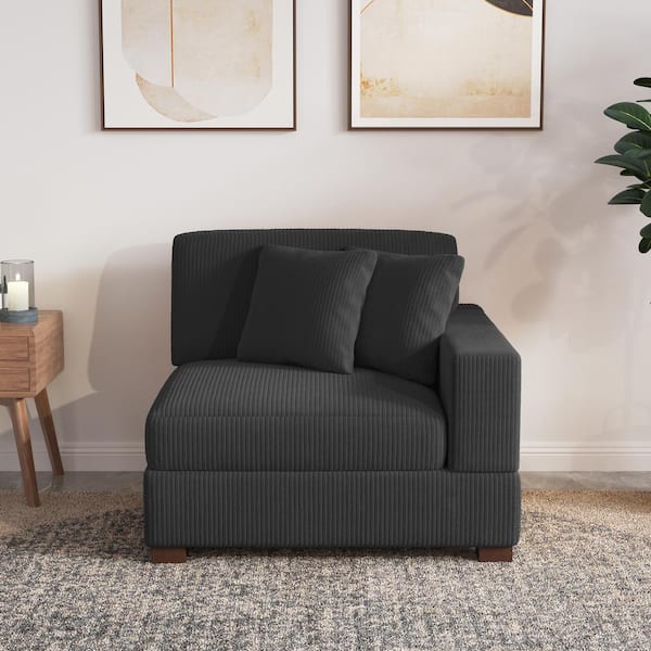 Modern Right Arm Facing Gray Corduroy Fabric Sectional Corner Arm Chair with 2-Pillows(Set of 1)