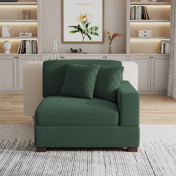 Modern Right Arm Facing Hunter Green Corduroy Fabric Sectional Corner Arm Chair with 2-Pillows (Set of 1)