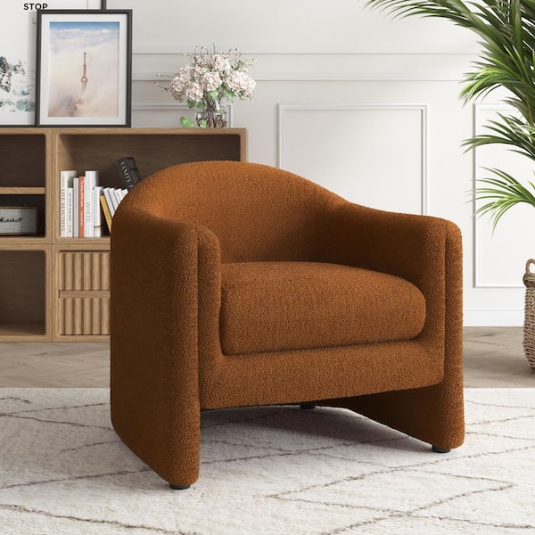 Modern Rusted Orange Boucle Polyester Fabric Upholstered Accent Barrel Chair(Set of 1)